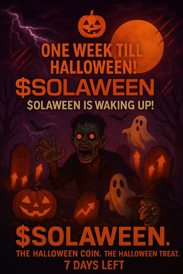 The moonβs glowing, the graves are shaking, and $SOLAWEEN is crawling back from the dead. π» π Prices are low, the spirits are restless and this might be the last chance to grab your Halloween bag before it rips through the tombstones. πΈοΈ Donβt get scared, get rich. π The Halloween coin. The Halloween treat. π₯ A few brave souls can turn this spooky dip into a pumpkin-sized moon. The countdownβs on, 7 days left. Time to wake the dead, spread the word, and ride the witchβs broom to the moon. ππ° T: SolaweenCTO2025 CA: 2axC2gK7gxmWq1xYoftynZHaraHnTAQ59XobYfyapump submitted by /u/jeffryh00 |