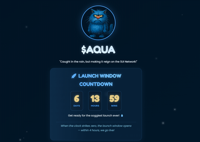 The countdown is on: just over 6 days and 13 hours remain until the $AQUA launch window opens on the SUI Network. Our website features a live countdown ticker leading directly to launch. When the timer hits zero, the window opens—and within 4 hours, $AQUA will be live. Make sure you’re ready, because this is when the soggiest launch in crypto history begins. Buying will take place on Moonbags. , a trusted SUI launchpad. Once we go live, you’ll be able to purchase directly through their platform during the launch window. So far, the community has already shown incredible energy. We’ve held two successful competitions that grew our audience across X, and the momentum is only building. Now is the time to get your SUI ready. Stay connected and up to date:– X (Twitter): AQUA_on_SUI $AQUA isn’t just another memecoin—it’s a community movement with humor, grit, and the soggy determination of our wet blue mascot. The storm is coming, and you won’t want to miss it. submitted by /u/Kdt82-AU |