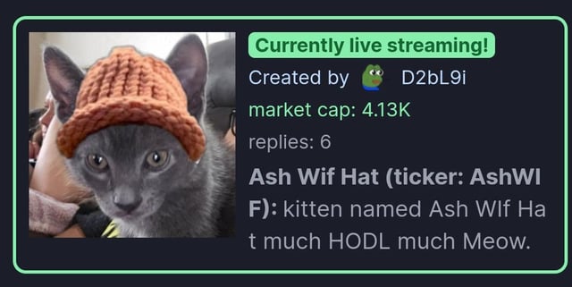 Kitten named Ash Wif Hat TG: t.me/+3utlPF_vSck3M⦠Ca: FJkb9GnLcrxUy2pddJSPMyPnscMWVDdgQEsTYqsBpump https://pump.fun/FJkb9GnLcrxUy2pddJSPMyPnscMWVDdgQEsTYqsBpump submitted by /u/DADDYV3NOM_ |