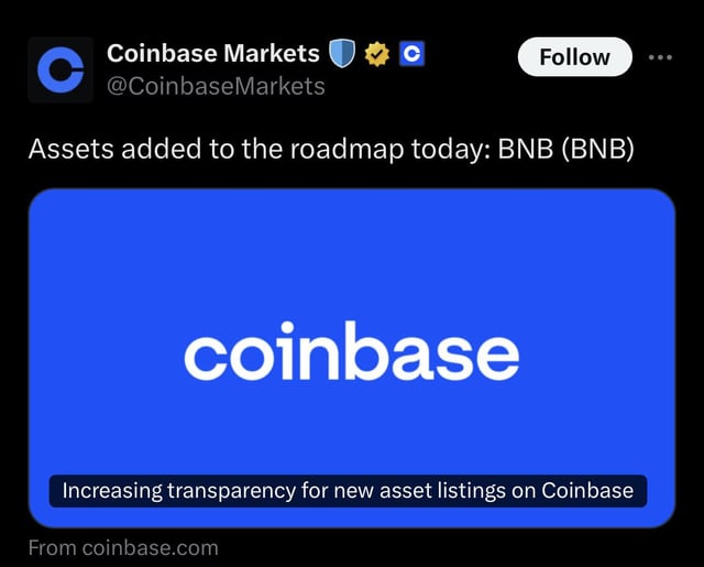 BNB x Coinbase = Bullish times ahead! πŸš€ submitted by /u/TheBigHodler