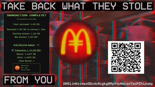 Pump.hub will have you believe that Creator Capital Markets and Creator Coins are the future of Web3 and where your fiat should go. If the past few weeks have taught us anything, it’s that rugs are more violent and “Creators” have even less skin in the game due to Creator Rewards. Rotate back into Pure Belief Assets. Coins that are rooted in a community of hodlrs that want to incite change. $SPX – Believe in Something $Crypto – Cash is fu$ked $MCDC – get rich or die frying MCDC CTO team is battle tested from 4chan to eth to sol to original dev creating a new MCDC vamp This team will hold our bags to zero or all retire and buy our own personal McDonald’s. Join the team and Win Together 🍟 submitted by /u/ShillNChill6900 |