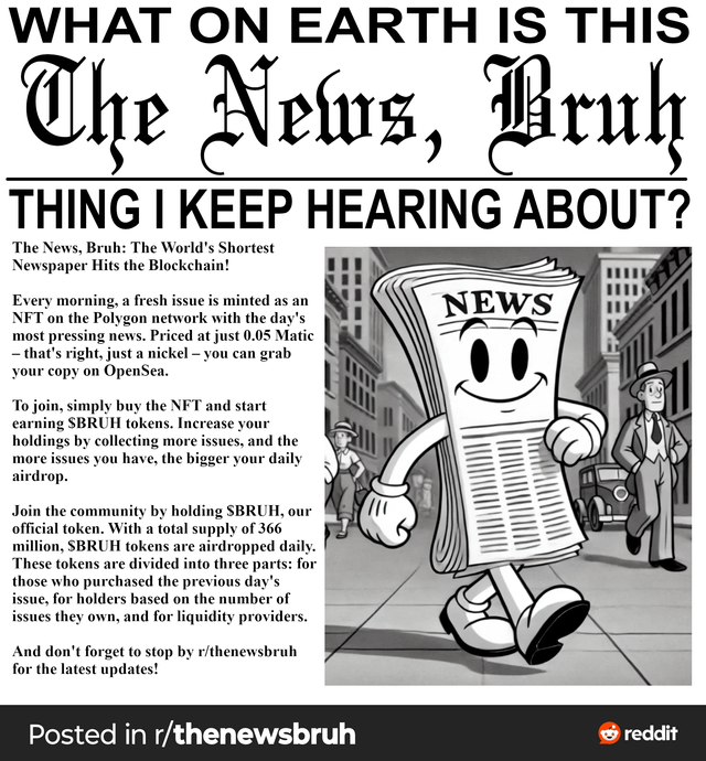 Have you heard the news, bruh? The world's shortest newspaper that earns you $BRUH tokens for holding. submitted by /u/Individual_Wallaby25