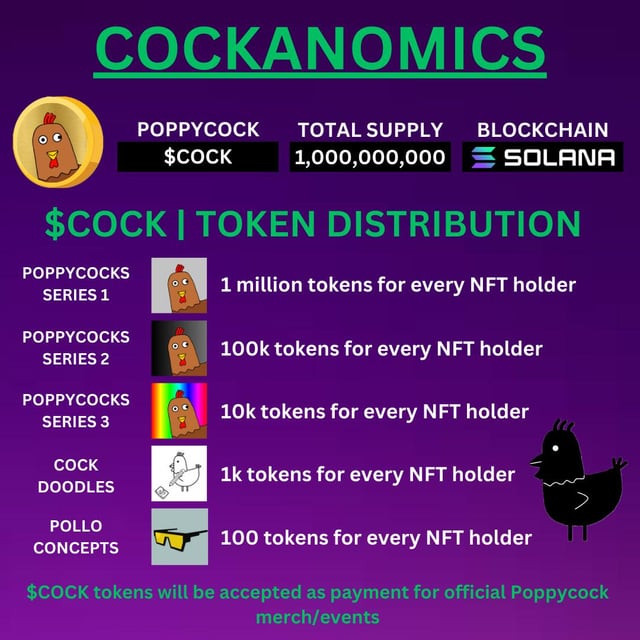 Meme coins are poppycock! π Poppycock ($COCK) is the official meme coin of the Poppycocks NFT project. A percentage of the tokens will be distributed to Poppycocks NFT holders based on how many NFTs they hold and which collections they have. π Poppycock meme coin holders can use the tokens to pay for entry to exclusive monthly events hosted by the Poppycocks NFT project and pay for our merchandise at our pop up shops. πͺ Launching January 1st π Cluck around and find out. submitted by /u/officialjustinochoa |