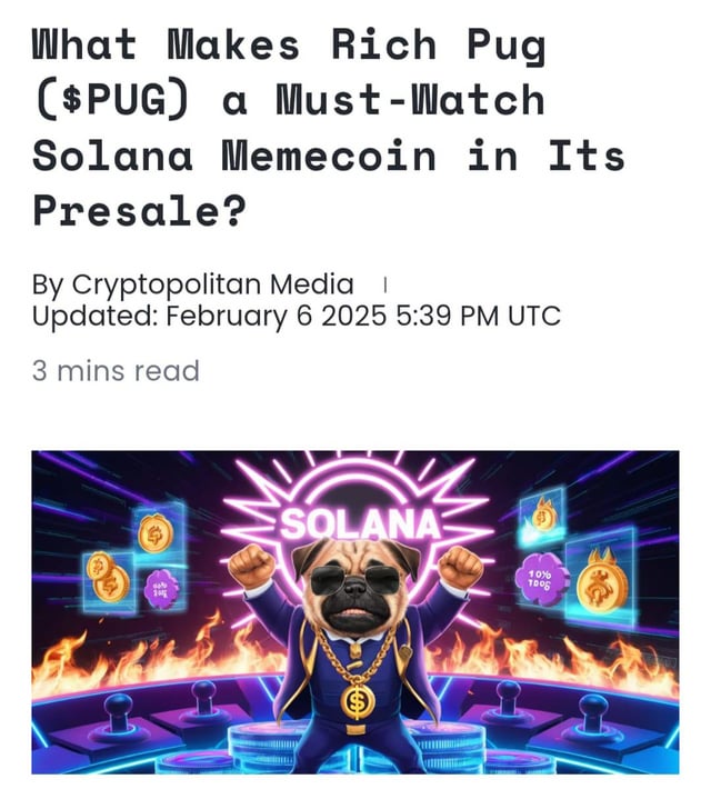 Cryptopolitan just featured Rich Pug in “What Makes Rich Pug a Must-Watch #solanamemecoin in its Presale.” Discover how $PUG is blending meme magic with real utility on Solana. Read the full story : https://www.cryptopolitan.com/what-makes-rich-pug-pug-a-must-watch-solana-memecoin-in-its-presale/ submitted by /u/Accurate-You-2515 |