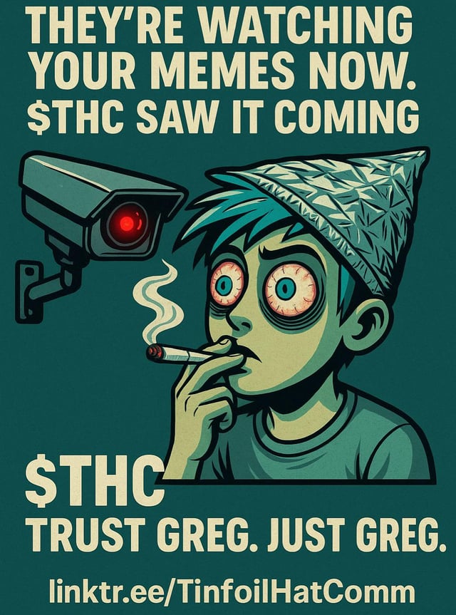 That’s why $THC exists. Not just a memecoin — a movement. A satirical resistance powered by paranoia, laughter, and just enough weed to block the 5G signals (Greg’s words, not ours).