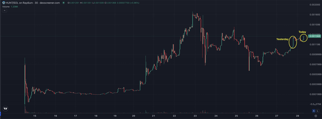 HUNT is up 39% in 24 hours! Look at this juicy chart! Still only a $1.3M MC! Look at that first pump then crash then look at that stabilizing sideways action followed by that nice ramp up to $1.8M ATH MC. All organic growth! I’ve gotten 1.83 ($390) SOL in rewards since holding this coin for the last 2 weeks! Here’s my take on the next few months: After every Reddit-based meme coin launches, they usually see a small pump, followed by a crash, then sideways for a few days, weeks, or months, then they blast off up to $20M – $50M, then they crash again and follow the rest of the market. HUNT has not seen that second big blast yet! It’s coming! submitted by /u/advertisingdave |